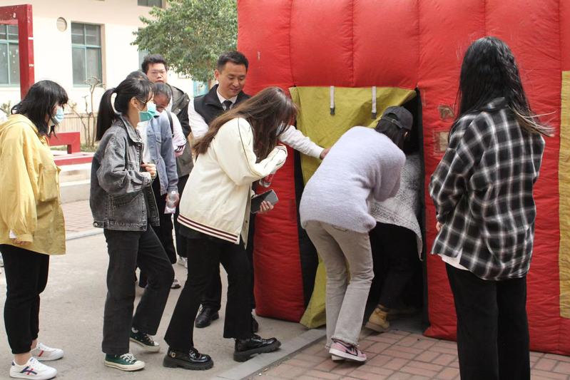 会上,省消防协会赵超磊教官进行消防安全知识讲解,通过观看视频和案例分析说明消防安全的重要性,深入浅出地为大家讲解了违规使用电器具有的危害性、火场自救知识和应急逃生知识,并对灭火器的正确使用做了讲解和演示,告诫大家在任何时候都要提高安全意识,防患于未然。在模拟灭火环节,新生在指导下逐一使用模拟灭火器,成功扑灭模拟火焰;在模拟烟雾逃生体验环节,全体新生进入模拟烟雾帐篷,感受真实火灾现场,“捂住口鼻,弯腰前行,根据指示标志逃生”,最终顺利完成烟雾现场逃生演练。整个过程紧张激烈、有条不紊。