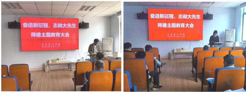 按照校党委《关于开展“奋进新征程,志做大先生”师德主题教育活动的通知》要求,5月11日下午, 黄色网站 召开“奋进新征程,志做大先生”师德主题教育大会。会议由学院党委书记邵书记主持,全体教职工参加。
