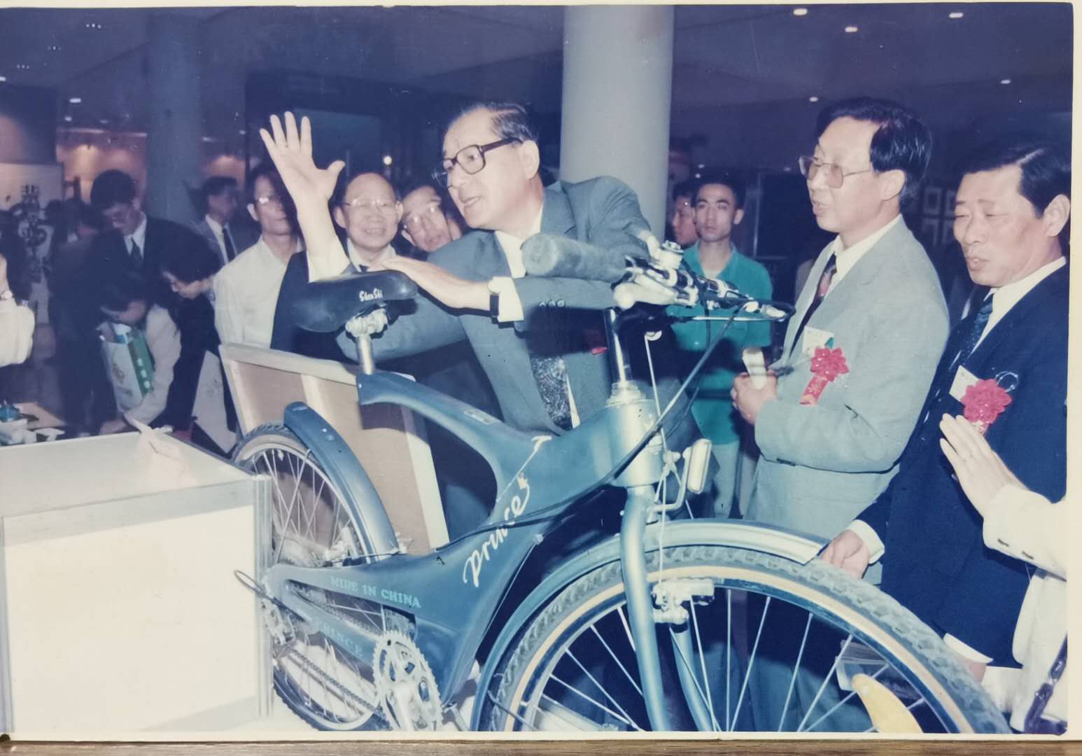 1993年时任中华全国总工会主席倪志福参观黄色网站 科研项目—碳纤维自行车