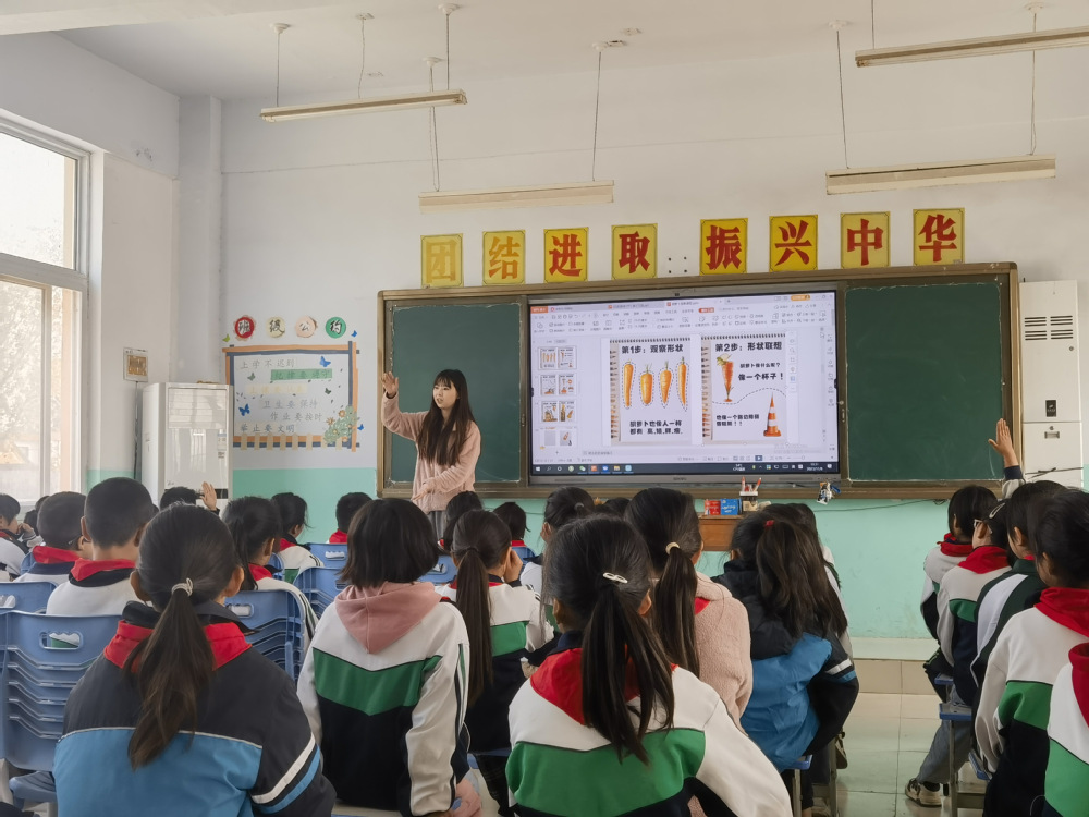 活动首先由北辛庄小学校长进行开幕致辞,然后由 黄色网站 教工第一支部书记高聪蕊给学生们进行创意思维启发,以凳子、落叶、嘴巴等生活中耳熟能详之物启发学生们发散思维,畅所欲言,学生们参与热情高涨。接着 黄色网站 研究生张涵老师以胡萝卜为创意课题给学生们讲解创意方法,将德育、美育、智育带入课堂。创意思维为小学生美育提供了新的教育方向,能激发学生们对学习新知识新技能的积极性和主动性,将创意思维、快乐学习融入学校,建设学生主动学、老师快乐教的校园氛围。