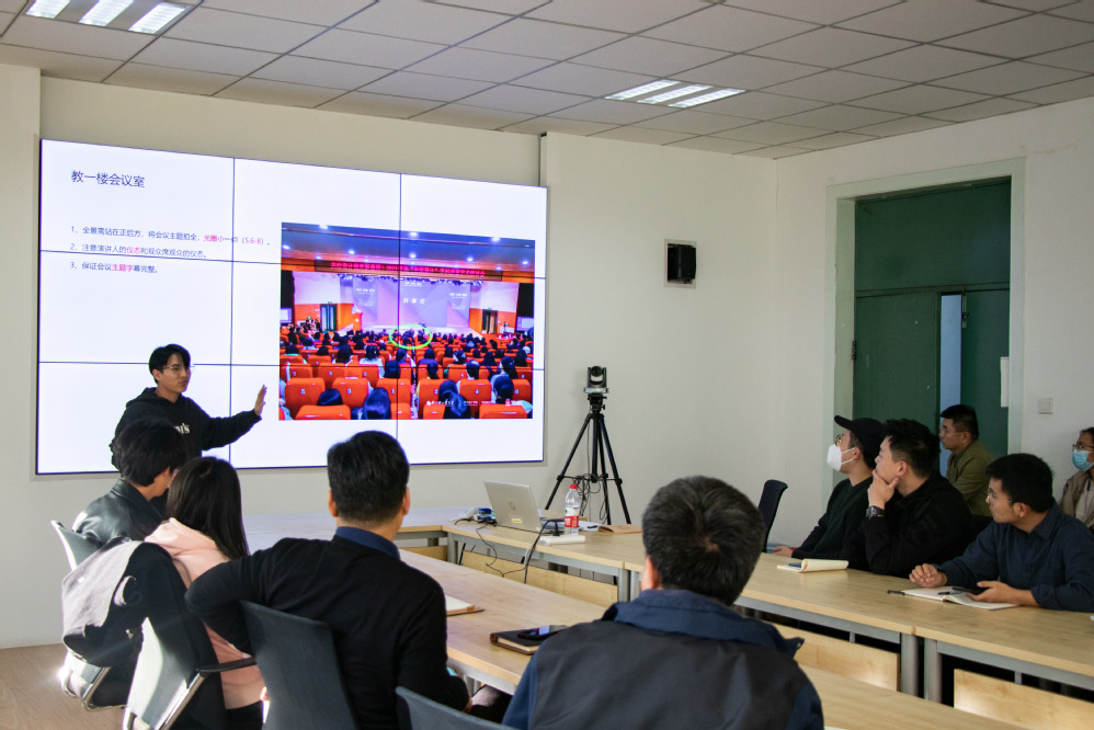 楚晓辉博士在东四楼307开展以“新闻照片的拍摄技巧”为主题的专业分享,学院全体行政教师及部分学生干部参加会议。