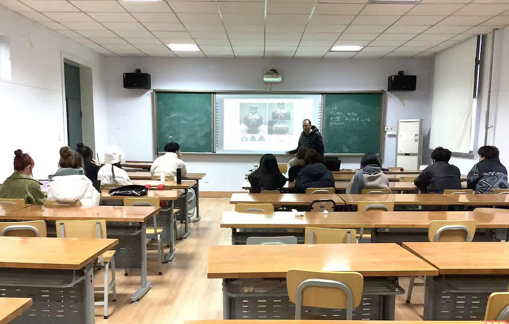 杨远教授以“先秦时期的人形装饰艺术”为主题,深入浅出地讲述了先秦时期的人形装饰图案,让在场的同学们对这一领域产生了浓厚的兴趣。他分享了人形纹的分类,并引入了牛津大学学者利用计算机技术对人形图案微表情的研究,揭示了这些图案所传达的情绪特征。杨远教授强调,兴趣是最好的老师,只有找到自己的兴趣点,才能展开进一步的研究。