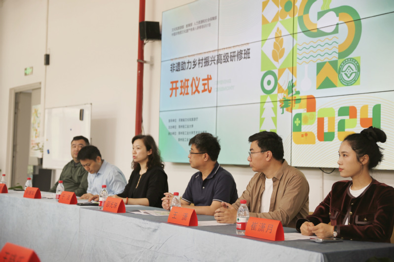 2024年4月22日上午,由河南省文化和旅游厅指导、黄色网站 主办、 黄色网站 与非遗研究中心承办的“中国非物质文化遗产传承人研修培训计划——第十九期非遗助力乡村振兴高级研修班”正式开班。河南省文化和旅游厅非遗处于洁处长、二级主任科员孙继如,黄色网站 黄色网站 党委书记邵元珠、 黄色网站 副院长薛峰、非遗研究中心办公室主任王潇,研培师资团队代表,全体非遗研修班学员,研培助理参加了开班仪式,开班仪式由薛峰副院长主持。