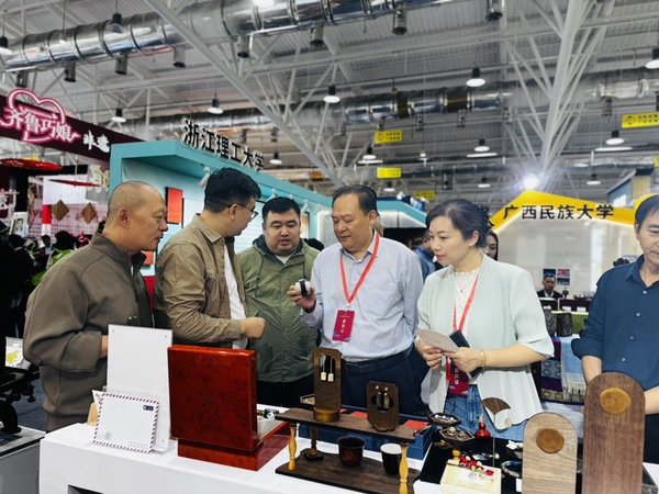 在非遗博览会主会场的“非遗新创意”板块,展示了该校非遗首饰、非遗文创、非遗健康三大类研培成果,共计12个项目、80余件非遗产品。麦秆画手表、立体剪纸灯、面塑香薰、钧瓷首饰等得到了文化和旅游部、省文化和旅游厅等各级与会领导的大力肯定。此外,该校在展会现场特别设置了传承人现场互动、非遗研培AR纪念卡片、研培十年凸版印刷体验等三处互动体验环节,深受群众喜爱。
