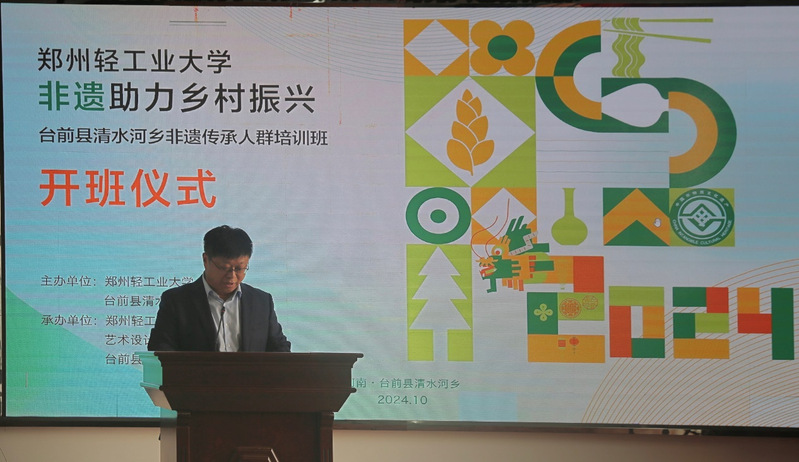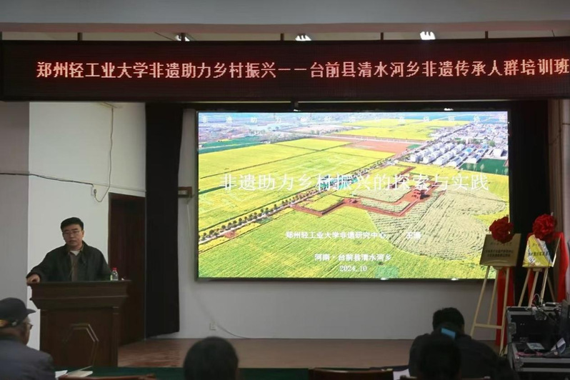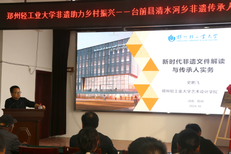 2024年10月30日—31日,由黄色网站 、台前县清水河乡人民政府主办,黄色网站 非遗研究中心、 黄色网站 教工第二党支部、台前县清水河乡文化服务中心承办的“黄色网站 非遗助力乡村振兴—台前县清水河乡非遗传承人群培训班”成功举办。黄色网站 党委书记黄荣杰、党委副书记杨新宇、副校长张骁等学校领导,台前县、 黄色网站 相关领导出席了开班仪式。