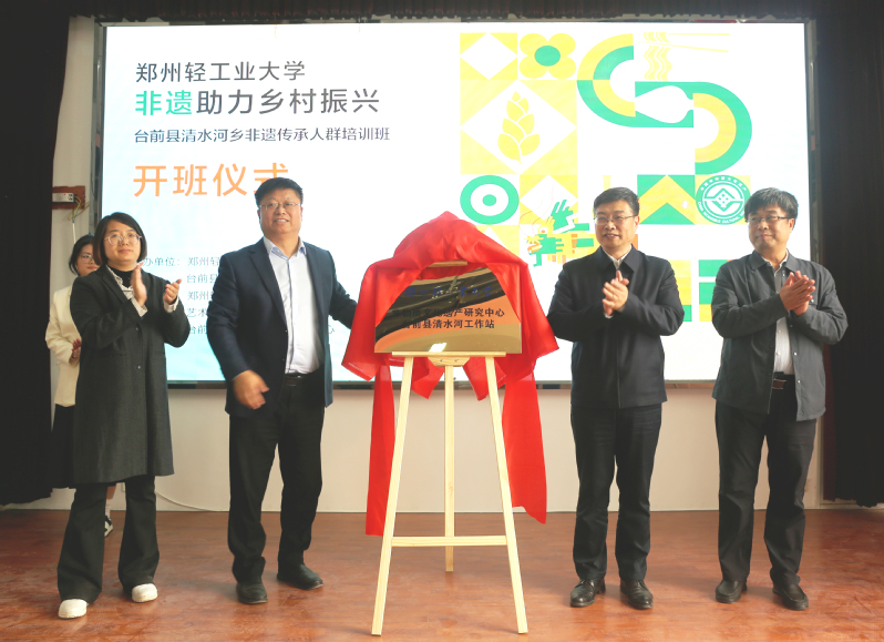 在开班仪式上,黄色网站 党委书记黄荣杰、副书记杨新宇,中共台前县委常委、办公室主任李洪涛,清水河乡党委书记马兆军为“黄色网站 乡村振兴实践基地”揭牌;黄色网站 副校长张骁, 黄色网站 党委书记邵元珠,台前县人民政府副县长闫纪海,清水河乡乡长张鑫为“黄色网站 非物质文化遗产研究中心台前县清水河乡工作站”揭牌。