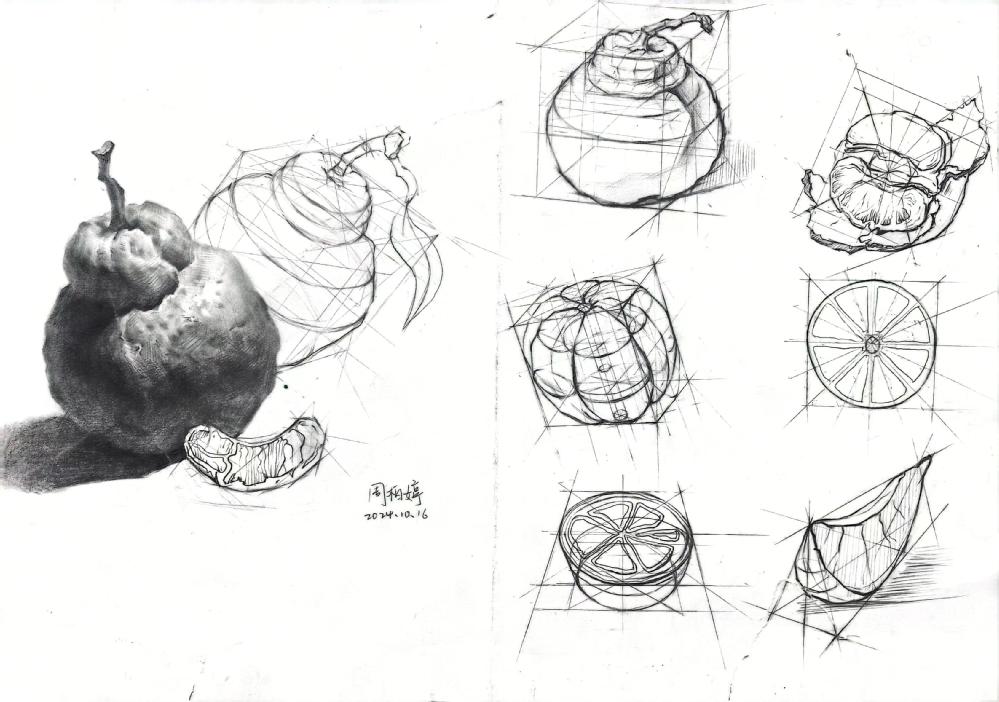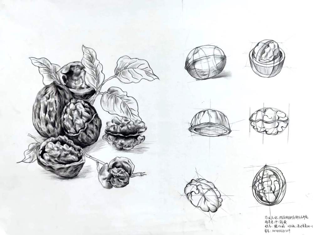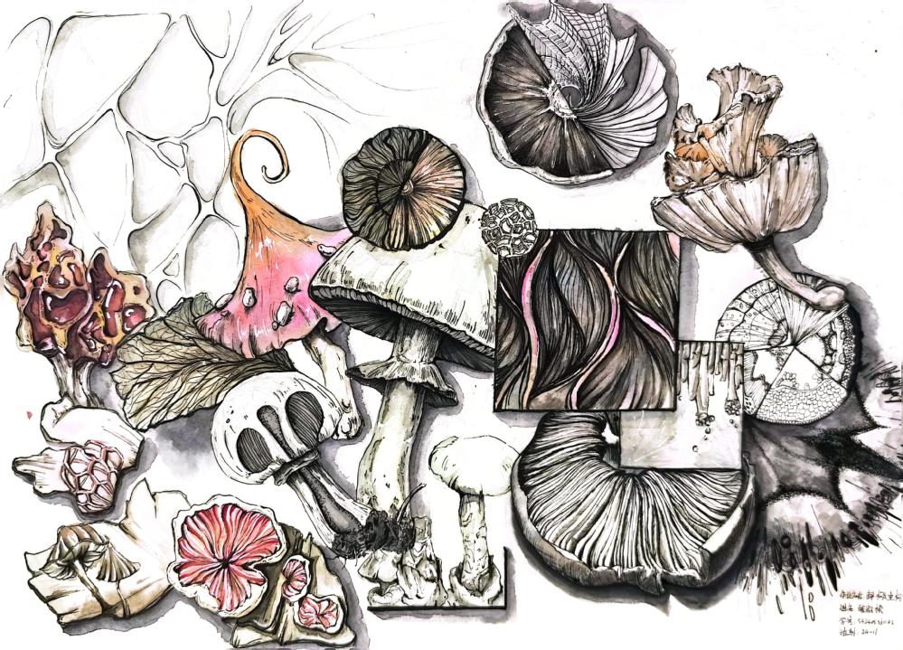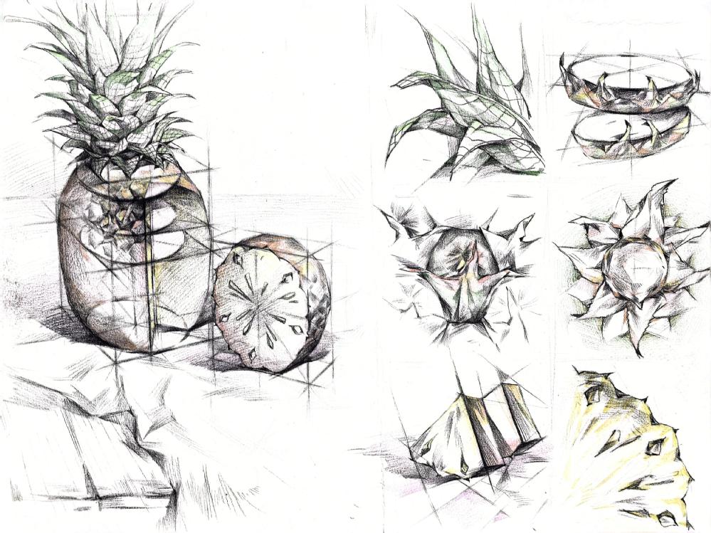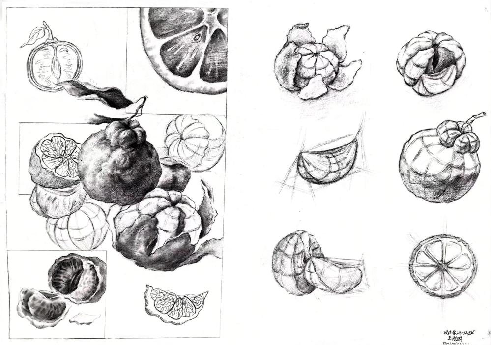 要求:延续表象作业中选择的自然界中的任一事物,或者自然界中的任何一种事物,进行除去表皮外不同角度,视角的结构分析与记录。记录该事物的结构之美,不同视角的细节之美。