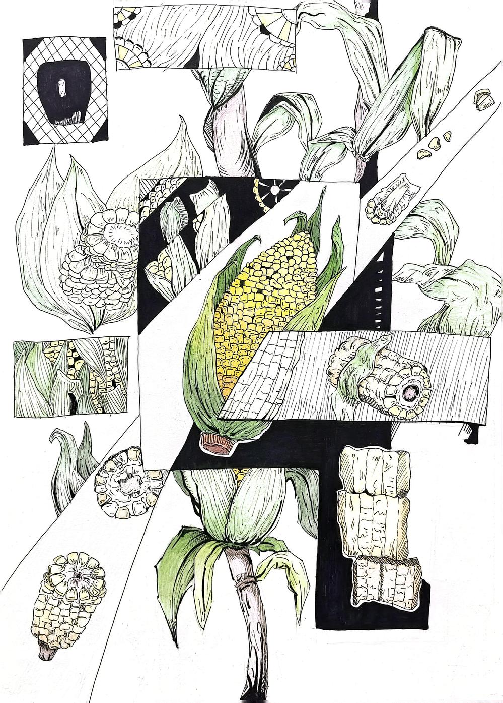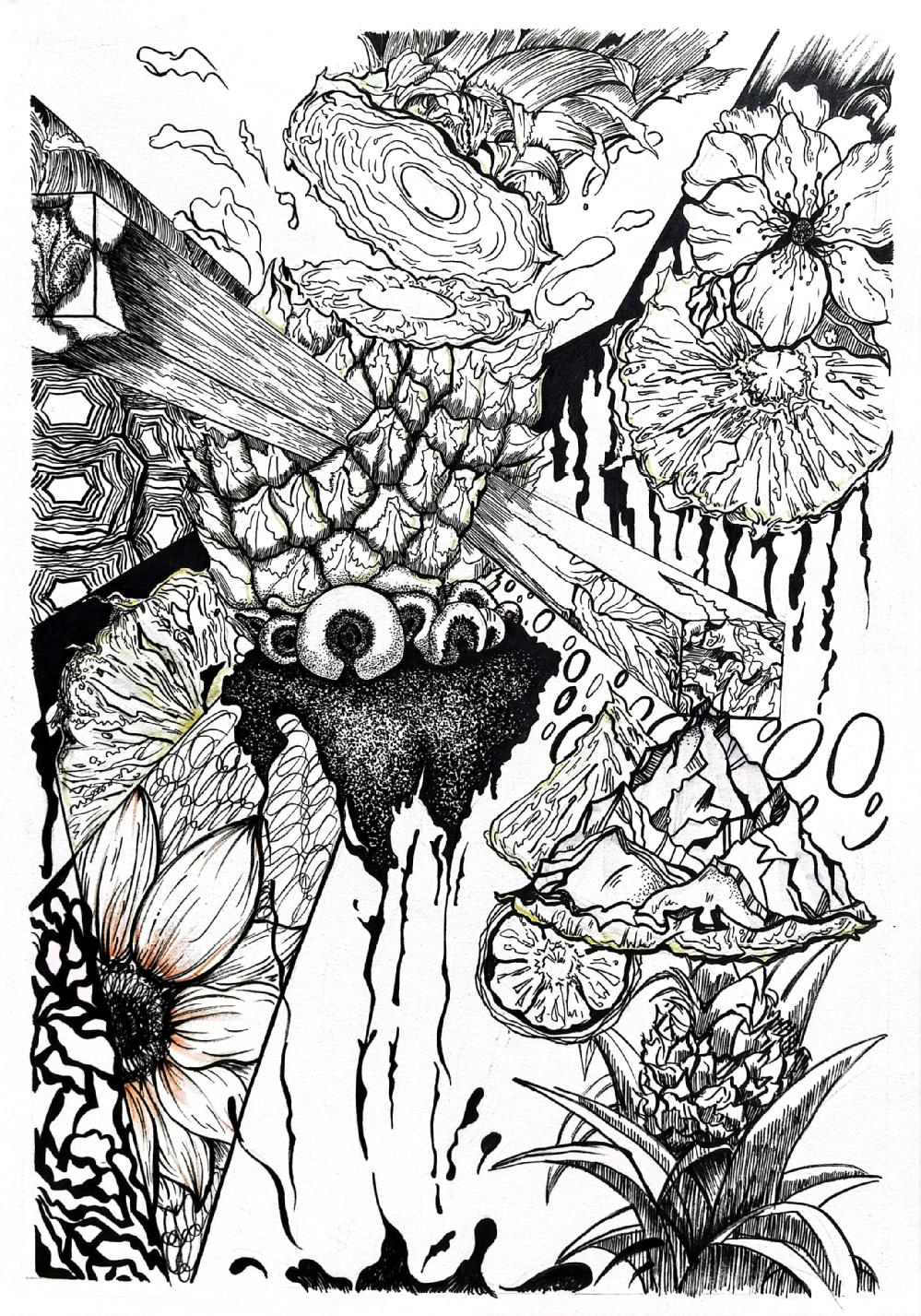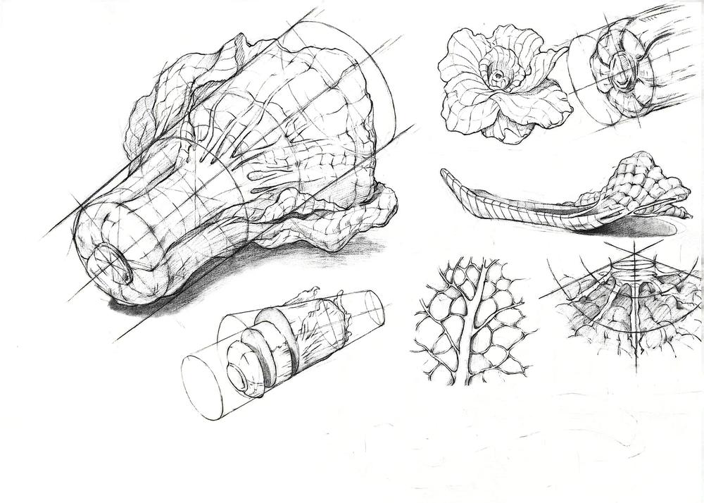 要求:延续表象作业中选择的自然界中的任一事物,或者自然界中的任何一种事物,进行除去表皮外不同角度,视角的结构分析与记录。记录该事物的结构之美,不同视角的细节之美。