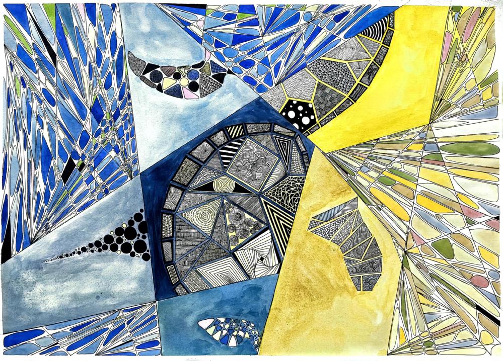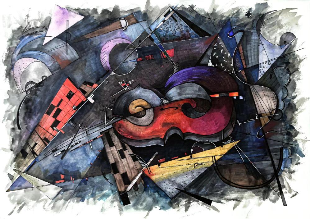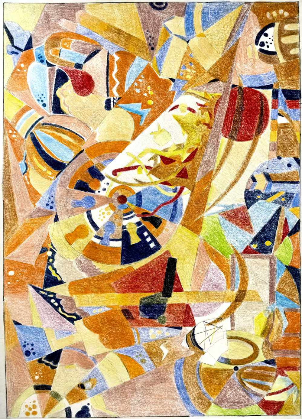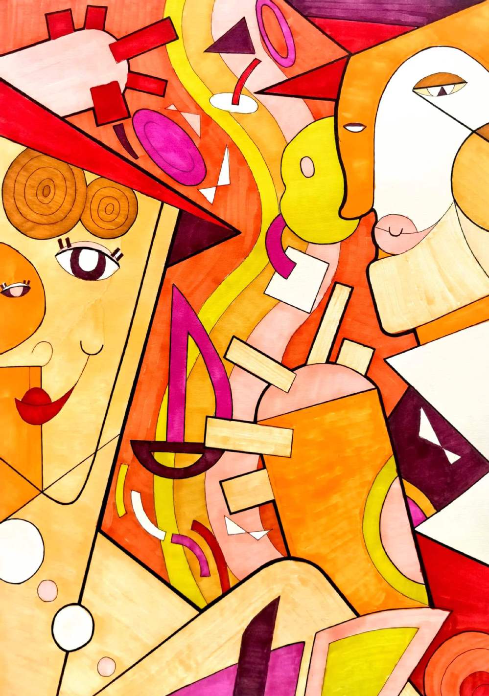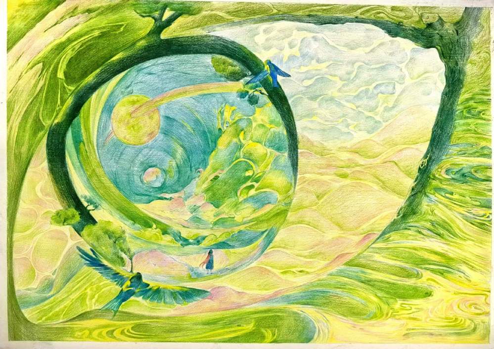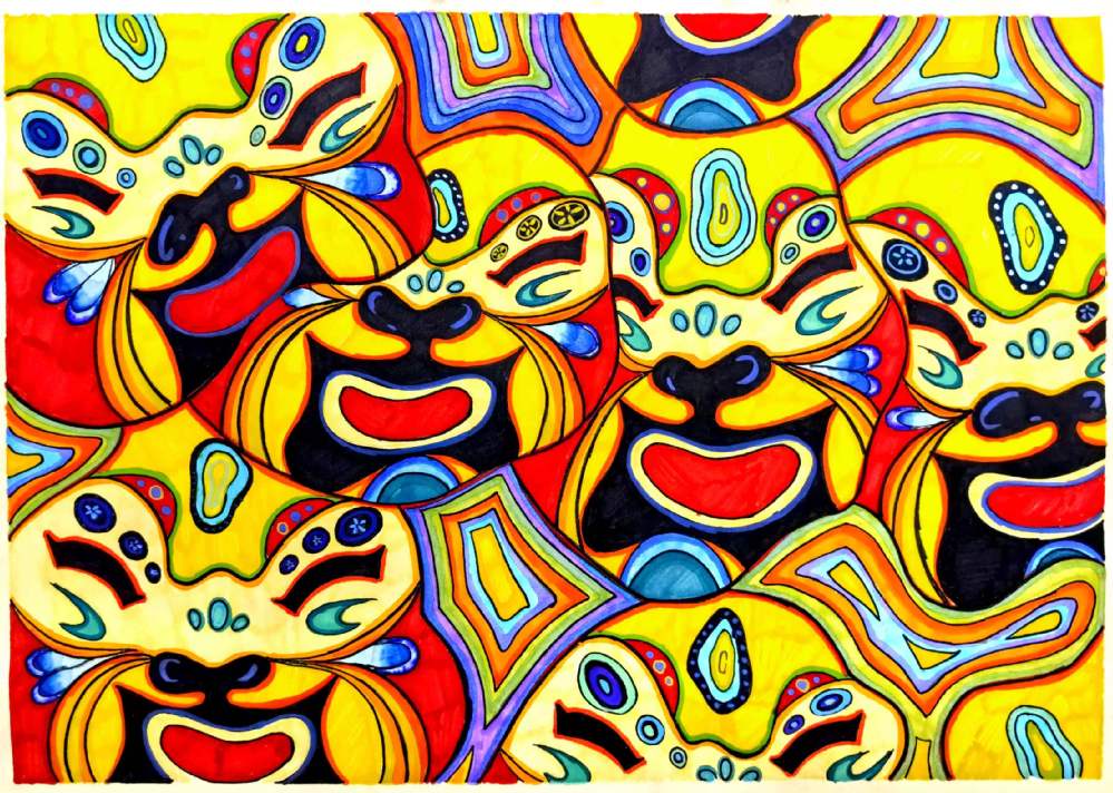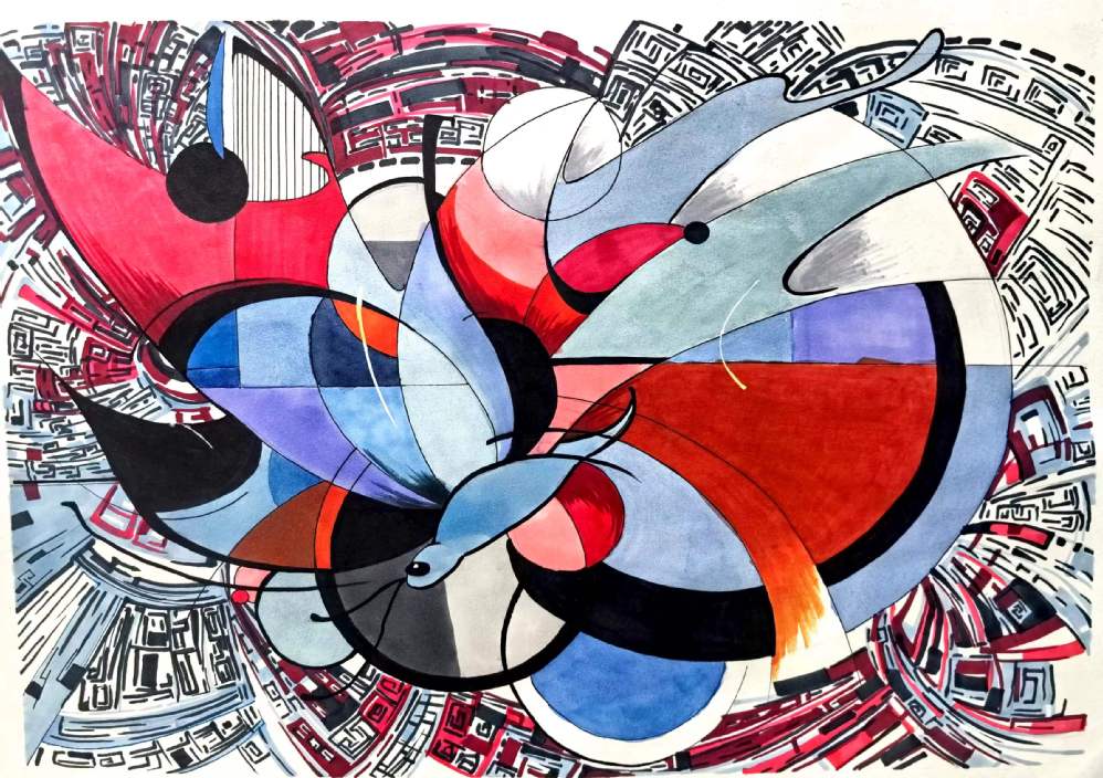 要求:以“情绪+?”为题进行创作,通过“+?”这种载体(载体可以延续第一部分你所选择的事物,也可以自由选择),来表达一种情绪或气氛,运用抽象与概括的相关知识,彩色表现。