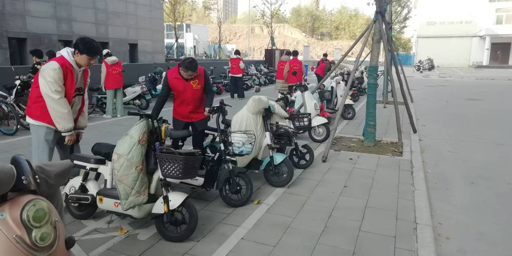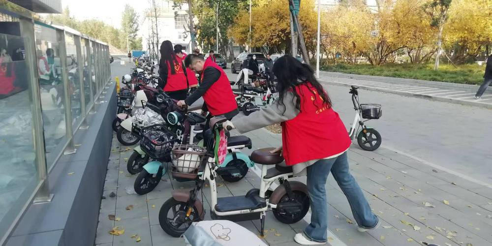 分工会组织师生志愿者开展了一场文明停车志愿服务活动,重点对校园内的电动车、自行车进行更加规范的摆放,以响应学校号召,开展文明校园创建活动。