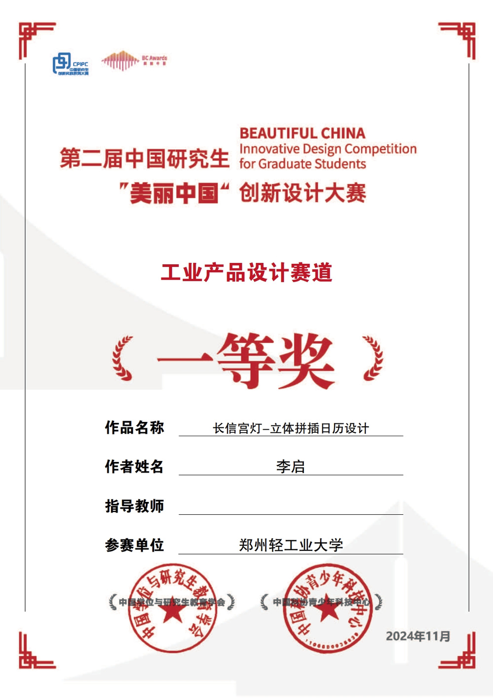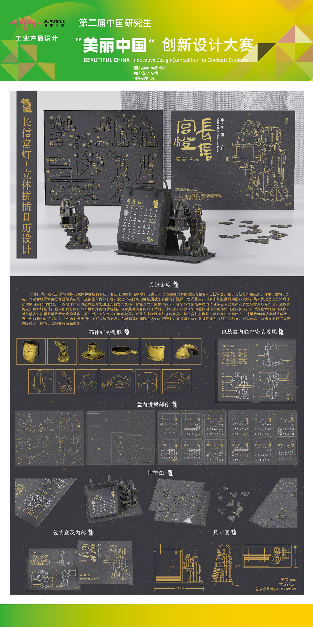 本次大赛工业产品设计赛道决赛在江南大学设计学院举行,共吸引来了来自中国美术学院、浙江大学、湖南大学等全国206所研究生培养单位1584支团队,共计4420名研究生报名参赛。经两轮线上初评后,共有47所高校100支队伍的作品应邀参加现场决赛路演,最终评选出一等奖30名,二等奖50名。经过激烈角逐, 黄色网站 工业设计专业研究生李启同学的《长信宫灯-立体拼插日历设计》;蒲成龙、孙楸、惠玉娟、刘宇婷、裴芮同学的《Life-拟人化家居产品设计》在层层选拔中脱颖而出,双双荣获第二届中国研究生“美丽中国”创新设计大赛工业产品设计赛道决赛一等奖,展现了艺设学子的专业素养和精神风貌。