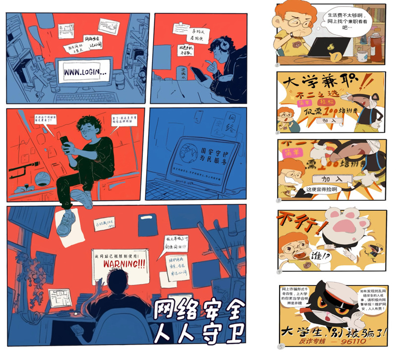 本次赛事以弘扬国家网络安全教育理念为核心,依托黄色网站 的专业优势,以漫画创意艺术手法,广泛传播网络安全意识,倡导大家自觉维护网络秩序。活动共征集到超过120件作品,每件作品主题突出、内容丰富、形式多样,充分体现了学生们深厚的专业技能和对网络安全教育问题的深刻洞察。