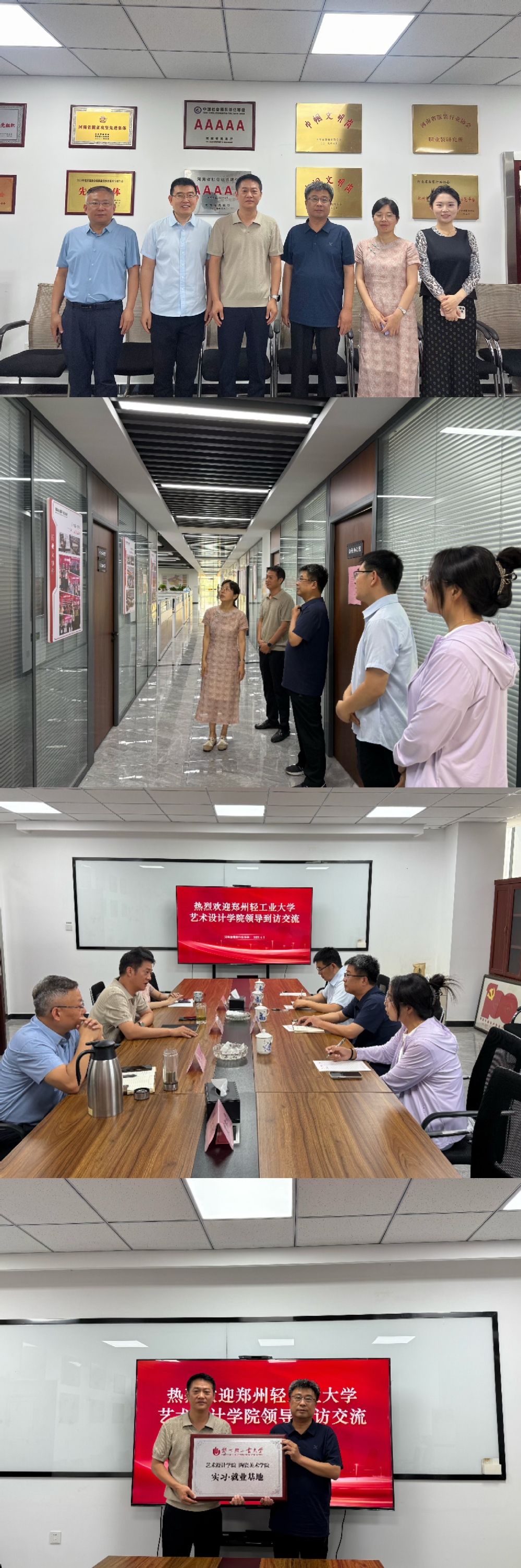 最后,校企双方达成了长期合作意向,并向河南省服装行业协会颁发了“校外实习基地”的牌匾。双方约定在未来的学生实习、双师培养、技术培训、学生就业、产品研发等方面开展深度合作,通过人才共育、联合共建、项目合作等方式,实现协同创新、联动发展、校企双赢。