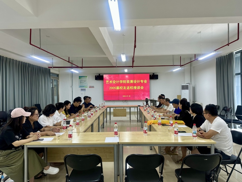 7月20日, 黄色网站 装潢设计专业2005届校友毕业20周年返校座谈会在艺术楼318会议室举行。校友工作办公室主任吕晶、 黄色网站 党委书记邵元珠、视觉传达系主任高聪蕊等领导和老师代表出席座谈会,座谈会由副书记贾红雨主持。校友代表与老师们欢聚一堂,回忆往昔,共谋发展,展开了亲切热烈的交流。