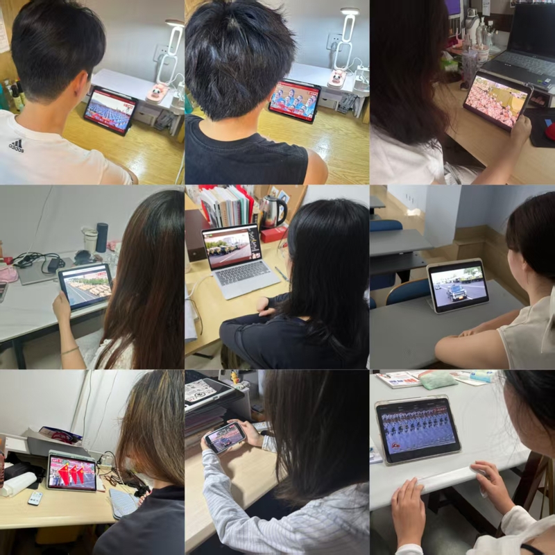 收看过程中,师生认真聆听习近平总书记发表的重要讲话,深刻领会讲话所蕴含的历史意义、时代精神和未来指引。阅兵式上,受阅部队步伐矫健、英姿飒爽,以排山倒海之势依次接受检阅。先进的武器装备有序亮相,展现了国家的自信与力量,也带来强烈的震撼与鼓舞。铿锵步伐踏出强国之音,铁甲战车彰显军威国魂。每一帧画面都令人心潮澎湃,每一秒镜头都凝聚着民族自豪。阅兵仪式的壮观场面给师生们带来了强烈的视觉冲击和心灵震撼,庄严的仪式、整齐的方阵、先进的装备共同构成了一场生动的爱国主义教育课。师生们在沉浸式体验中感受国家强盛,坚定理想信念。