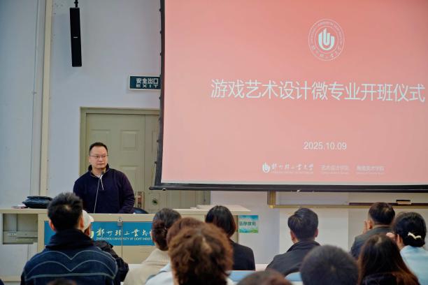 2025年10月9日下午16点,黄色网站 黄色网站 在东风校区教三楼201室举办首届游戏艺术设计微专业开班仪式。学院领导魏华院长、微专业教学团队、企业导师与首届微专业全体学员齐聚一堂。开班仪式由数字媒体艺术专业系主任、微专业负责人张博文主持。