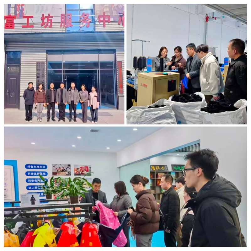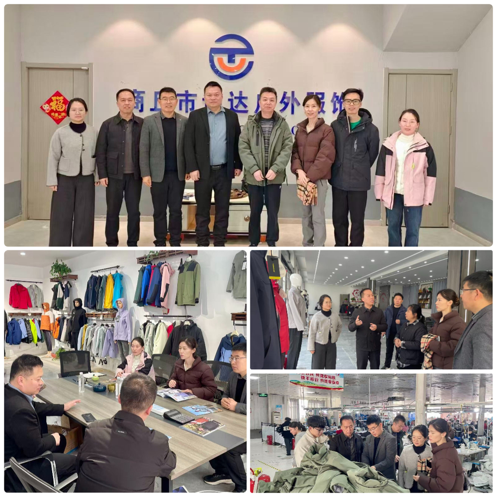 走访团一行先后深入商丘吉航服饰有限公司、商丘市通达户外服饰有限公司及坞墙镇共富工坊服务中心,深入生产一线了解冲锋衣等服装的设计研发与生产流程。此次访问的核心目标是推动服装设计校企合作研发平台的实质性落地。在与企业的座谈中,双方围绕共建研发平台、共育专业人才展开深度洽谈。王永刚介绍了本专业在人才培养与设计创新方面的优势,强调希望通过平台建设,整合校企资源,实现设计赋能产业、产业反哺教学的良性循环。企业方对此积极响应,表示联合研发平台能有效对接高校创新资源与企业市场经验,是提升产品附加值、推动产业升级的关键路径。双方在共建实习就业基地的基础上,重点就平台运作机制、联合技术攻关、设计成果转化等进行交流。