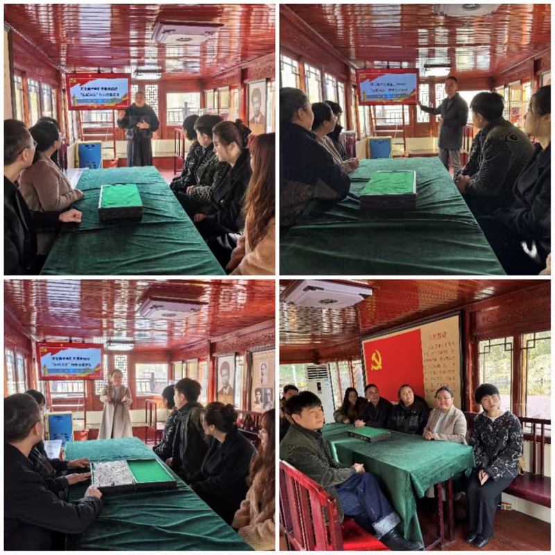 三位党员教师结合自身党建工作经验与学科专业特色,分别从红色文化的历史渊源、时代价值以及艺术化传播路径等角度展开分享。刘秀伟教授谈到,设计学科应成为红色文化传承的重要载体,通过视觉设计让红色符号更具感染力;卢建洲教授则结合课程思政实践,阐述了将红色精神融入艺术教育的具体方法;李金梅副书记介绍了河北美院依托红色情景园,打造“实景+理论”思政教育模式的探索与成效。微党课内容充实、视角新颖,让师生们在红船实景的熏陶下,对红色文化有了更为深刻的理解。