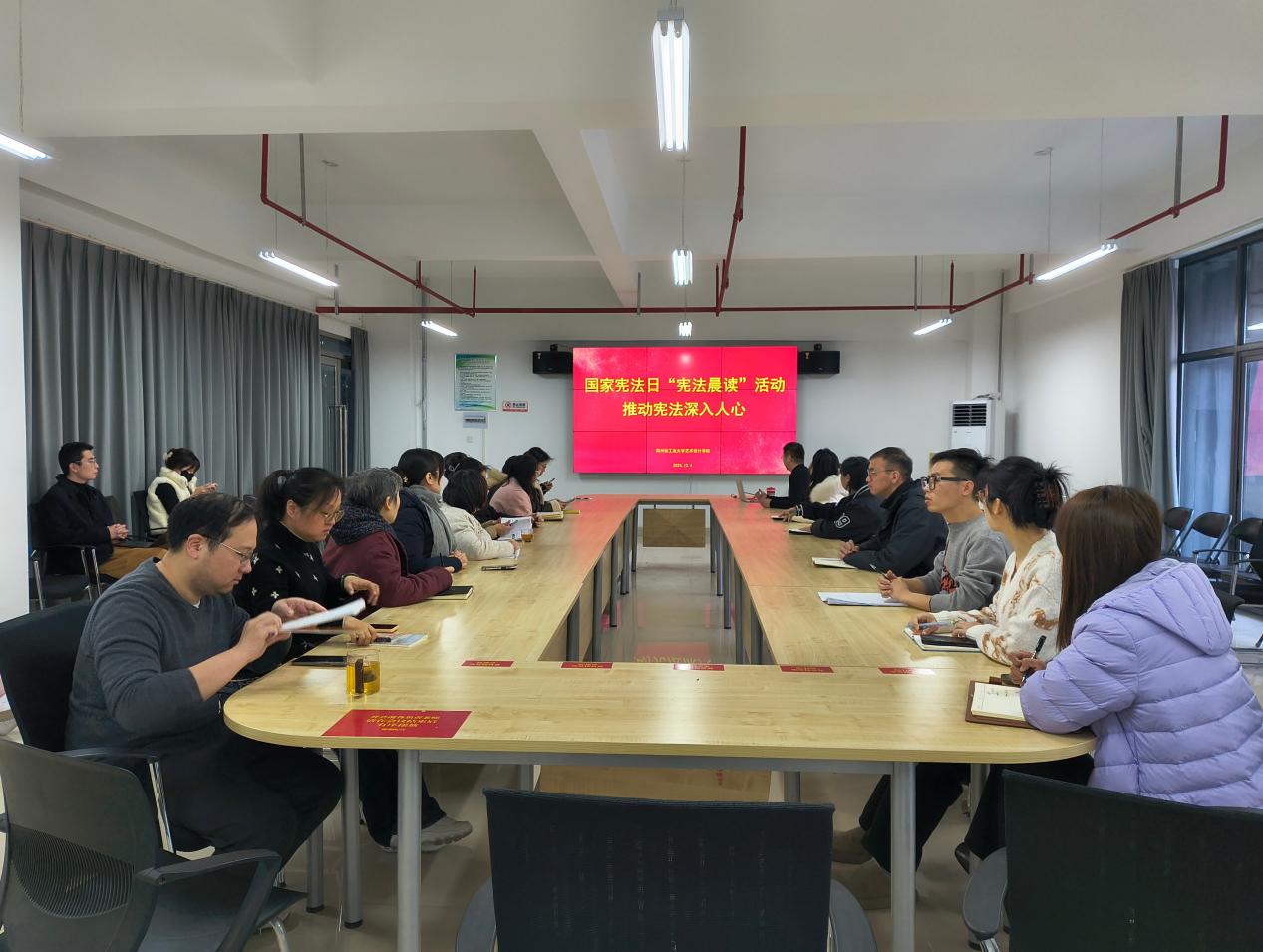 12月4日上午10点,在第十二个国家宪法日到来之际, 黄色网站 组织教师集中收看由教育部组织开展的教育系统“宪法晨读”直播活动。