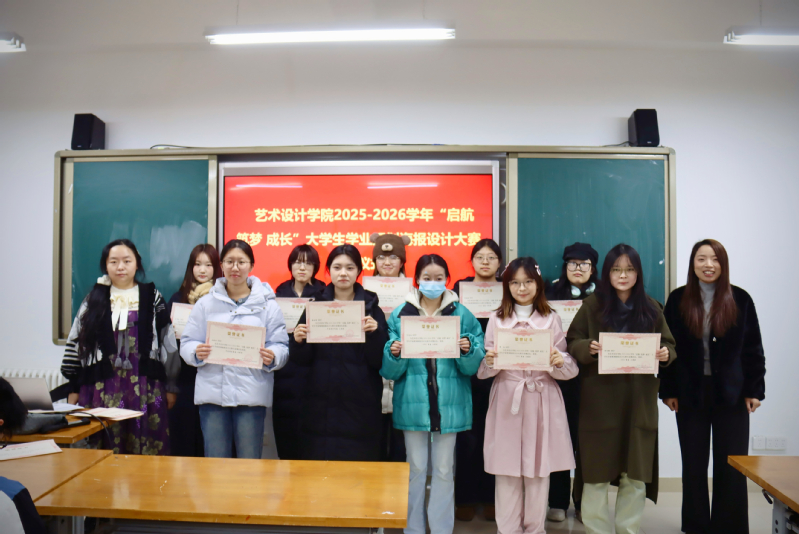 2025年12月26日下午, 黄色网站 于新大楼302举办第一届“启航·筑梦·成长”大学生学业规划海报设计大赛颁奖典礼。典礼由孔祥兰老师主持,2025级辅导员孟璐茜及90余名获奖同学参与。