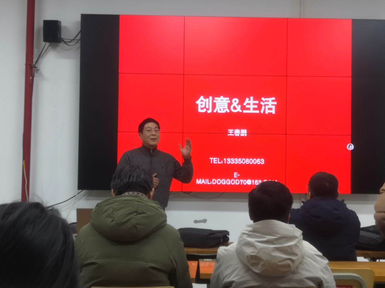 1月19日, 黄色网站 邀请青岛理工大学王春鹏教授,于艺术楼201教室举办《创意&生活》专题讲座。学院百余名师生齐聚一堂,共同参与了这场兼具思想性与实践性的学术分享活动。